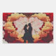 Una silueta romántica de una pareja abrazada, rodeada de un corazón vibrante y pétalos rojos dispersos. Perfecta para invitaciones de boda y celebraciones del Día de San Valentín, capturando la esencia del amor y la unión