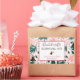 Adjunta estas divertidas pegatinas a una caja llena de cosas buenas para recuperarse de la resaca para el fin de semana de despedida de soltera. Pegatina del Kit de Supervivencia de Despedida de Soltera con hojas tropicales y flores rosas. Personaliza con el nombre de la Novia y hashtag.