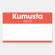 Pegatina rectangular al estilo de "HOLA mi nombre es", con un texto blanco, "KUMUSTA ako si" sobre un fondo rojo. Matte pegatina permite escribir al pegatina.