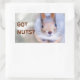 La ardilla te mira desde abajo preguntando si tienes algo de comida para este animal gracioso. La ardilla simboliza la practicidad, la necesidad de hacer provisiones planetarias. Pegatina rectangular. ¿Puede cambiar o eliminar el texto de la plantilla Got Nuts?
