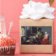 La copa de vino de Johannes Vermeer, aceite sobre lienzo c. 1658-1660, es una de las primeras composiciones maduras del pintor con sus preocupaciones características de los efectos de la luz natural a través de figuras y objetos en una escena de género interior. Un caballero en un gran gorra oscuro ha vertido un vaso de vino para una joven sonriente. La luz de una vidriera rebosa sobre la escena de tonos cálidos que contrastan con el azul ultramarino fresco, tema de color repetido en muchas de las composiciones posteriores del maestro holandés. Johannes (Jan) Vermeer (1632 - 1675) fue un pintor holandés de escenas interiores cuyas obras fueron redescubiertas en el siglo XIX. Trabajando como pintor y como comerciante de arte, Vermeer poco a poco produjo algunas de sus laboriosas composiciones, ricamente pigmentadas al año, viviendo enteramente en su ciudad natal de Delft, sin lograr nunca la fama de sus contemporáneos cercanos Rubens y Rembrandt. En la era modernista, las composiciones de Vermeer, ricamente texturizadas y vibrantemente coloridas, planeadas con una perspectiva cuidadosa y un naturalismo cuasi científico, encontraron un nuevo seguidor entre los artistas de las escuelas realistas e impresionistas.