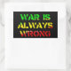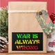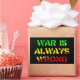La guerra siempre está equivocada, con estampado en verde, amarillo y rojo sobre negro.
