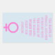 En un texto rosado, la pegatina dice: "¡La Tierra es mujer, y ella ruge con los ecos de las mujeres que luchan por la justicia!". El texto es seguido por el símbolo femenino, también de rosa. El texto se escribe para ser diseñado en forma de exclamación. Puede cambiar el color del fondo.