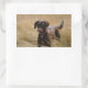 Pegatina Rectangular Labrador de Chocolate Lamiendo Completamente