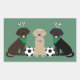 Pegatina Rectangular Labrador de perros jugando al fútbol