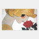 PEGATINA RECTANGULAR LADY CON ROSA ROJA