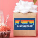 Conocido como la Reina de los Lagos Americanos con sus más de 300 millas de costa y sus más de 300 islas, el lago George es un paraíso vacacional que ofrece infinitos deportes acuáticos, senderismo, ciclismo y aventuras al aire libre. Este diseño vintage presenta colores retro con árboles y un arcoiris.