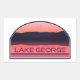 Conocido como la Reina de los Lagos Americanos con sus más de 300 millas de costa y sus más de 300 islas, el lago George es un paraíso vacacional que ofrece infinitos deportes acuáticos, senderismo, ciclismo y aventuras al aire libre. Este diseño muestra un lago con un amanecer rojo profundo.