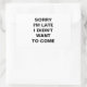 PEGATINA RECTANGULAR LAMENTO QUE YO LLEGUE TARDE. NO QUERÍA VENIR PEGAT