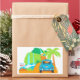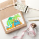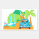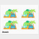Un sticker de rectángulo blanco con una ilustración de la carretera a Hana. La parte trasera de un escarabajo vintage luce una placa de Aloha con vistas de cascadas en el camino al destino. Una palma tropical y una señal de tráfico guían al viajero a Hana. Un sticker adorable para una invitación o regalo con tema hawaiano. ¡Perfecto también para una boda de destino!