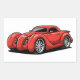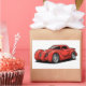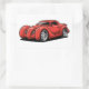 A lava red experimental hotrod with spiraled fenders. A striking cartoon design for fans of creative high energy car art.