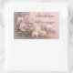 Pegatina Rectangular Lavanda con flores rosadas