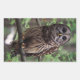 Una hermosa lechuza adulta de barro encaramada en una extremidad de árbol. Foto de Brian Kraus.