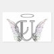 Pegatina Rectangular Letra U Monograma inicial con Angel Wings & Halo