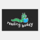 Pegatina Rectangular Leyendo el ratón de biblioteca cute con un libro