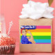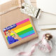 PEGATINA RECTANGULAR LGBTQ ROSIE EL RÍO CON BANDERA DE LLUVIA