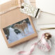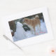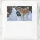 Pegatina Rectangular lindo akita besando a un muñeco de nieve perro en