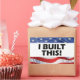 Muestra a todos lo que has logrado a través de tu propio trabajo duro e inteligente. Este producto "Yo construí esto" es genial para hacer una declaración política sobre lo que el trabajo duro puede hacer en Estados Unidos. Hagan un comentario en contra de la cita del presidente Obama sobre los negocios... "no construyeron eso... otra persona hizo que eso sucediera". Esta insinuación anti-Obama seguramente atraerá la atención. Fondo de la bandera roja blanca y azul estadounidense con texto en blanco y negro que muestra lo que construiste. Diseños Copyright © 2012 www.CuteComfy.com Este diseño está disponible como una colección completa!