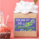 Otro diseño de carácter vegetal brillante de Punny Garden. Un alegre y verde apio lanzando confetti anunciando "¡Lo hiciste! Celerybrate". La tipografía es cualquier cosa menos simple. ¡Se ha creado a la manera única de toda la planta de apio! Contiene arte del tallo de apio, hojas de apio y hermosas flores de apio. Comparte este mensaje positivo de celebración con tus amigos y familiares.