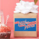 Un logo clásico de la Mujer Maravilla en rojo y azul, con series W alargadas para crear rayas largas.
