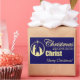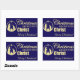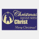 La característica de este pegatina con la temática de la fe es una simple escena de la natividad de la silueta dentro de un círculo con la Estrella de Belén arriba, y el texto estilizado que dice "Los Navidades comienzan con Cristo". Todo es de oro brillante, sobre un fondo azul oscuro.