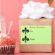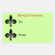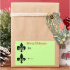 Los navidades huyen de lis hacia el gran Pegatina de regalos. Dos símbolos negros están en el lado de esta etiqueta de la tarjeta de regalo, con TO y FROM escritos a su lado. Fondo verde. Feliz Navidad está escrito en la cima de rojo. Un diseño único para sus regalos de vacaciones. Tamaño grande: 4,5" x 2,7" PERSONALIZAR TI. Puedes cambiar la redacción a Feliz Cumpleaños, Saludos, Pensar en Ti, Deseos de Cumpleaños, o una breve redacción de tu elección. Para cambiar el color del tipo de letra para que se corresponda con la ocasión o el tema, pulse en el cuadro de color situado junto al botón F. Para cambiar el color de fondo, utilice el botón de edición.