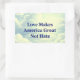 This whimsical sticker features the inspirational message "Love Makes America Great Not Hate" set against a serene sky with soft clouds, symbolizing hope, unity, and positivity. Finished in a soft oil paint art print.