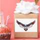 Showcase your American pride with this striking illustration of a bald eagle in mid-flight. The eagle's majestic outstretched wings and body are creatively stylized with the iconic red, white, and blue colors and star patterns of the American flag. This bold, dynamic artwork is an excellent choice for a wide variety of print-on-demand products, including decals, drinkware, wall art, and everyday accessories.