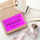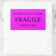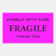 Pegatinas con: Frágil. Manejar con cuidado. Gracias. Texto negro sobre fondo rosado. Personalice su información utilizando las plantillas más sencillas. El color de fuente, el estilo de fuente, el tamaño de fuente y el color de fondo rosado son personalizables.