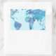 Pegatina Rectangular Mapa del mundo azul