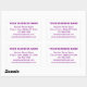 Los diseños de textos simples y simples a menudo son fáciles de entender y recordar. Diseño de textos sencillos y pegatina de personalizables que puede utilizar como material de marketing para promocionar su negocio o promocionar su marca a clientes o clientes. pegatina de personalizable que puede utilizar para crear conciencia de marca. También puede utilizarlo como accesorio de materiales de embalaje de productos. Los diseños son textos puros sobre fondo blanco y forma rectangular. Para el personalizar de este pegatina, escriba el nombre de su empresa o empresa, dirección, número de teléfono, correo electrónico y página web o de medios sociales. Compruebe la apariencia después de escribir textos. Si la apariencia le resulta agradable, puede realizar su pedido ahora. Si necesita cambiar el tamaño y mover los textos para que encajen en este pegatina, cambie la herramienta de diseño. También puede realizar otros cambios según la apariencia que prefiera en la herramienta de diseño, como cambiar el color de fondo, el color de la fuente y el estilo de fuente.