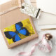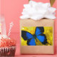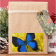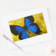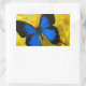 Hermosa mariposa de cola cruda azul en daffodis amarillos brillantes