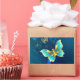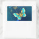 Pegatina Rectangular Mariposas doradas sobre fondo azul