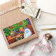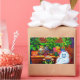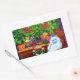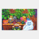 Pegatinas con el maestro de pintura animal de Louis Wain del Cat College (1860-1939). Un bonito gato blanco con ojos azules llamativos se sienta preponderantemente al lado de una vibrante variedad de hermosas flores. La majestuosa escuela de gatos se cierne sobre el fondo bajo un cielo rosa y azul. Un regalo maravilloso para los amantes de los gatos y el arte inglés.