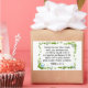 El pegatina cristiano de escritura inspiradora cita el marco de un trébol verde con un pájaro y flores azules simples. Presenta una parte de las Bestias, la famosa enseñanza de Jesús del Sermón del Monte, la Biblia Verse Mateo 5:11-12, "Bendito eres cuando la gente te insulta, te persigue y falsamente te dice todo tipo de maldad contra ti por mi culpa. Alégrate y contenta, porque gran es tu recompensa en el cielo".