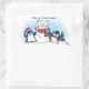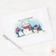 Pegatina Rectangular Merry Christmas Penguins building a Snow Cat