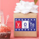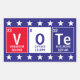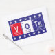 Inspiren a otros a votar con estos geniales pegatinas con temas científicos, con elementos de la tabla periódica que deletrean la palabra "Vote" en los colores rojo, blanco y azul de la bandera de Estados Unidos bordeada por una fila de estrellas blancas. Los elementos incluyen el nombre del elemento, el peso y el número atómico.
