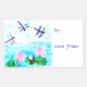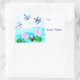 Pegatina Rectangular Moda Blue Dragonfly Pink Waterlily Pond