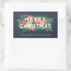 Pegatina Rectangular Moderna negrita Floral Feliz Navidad Nombre Azul