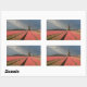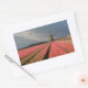 Pegatina Rectangular Molino de viento con tulipanes rosados en primaver