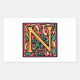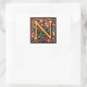 Pegatina Rectangular Monograma elegante medieval inicial N antiguo