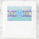 Pegatina Rectangular Monograma Floral Azul Pastel