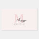 Pegatina Rectangular Monograma mínimo inicial y nombre Pastel rosa