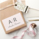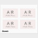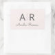Pegatina Rectangular Monograma mínimo inicial y nombre Pastel rosa