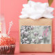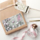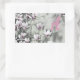 Pegatina Rectangular Monograma Rama de magnolias rosadas dibujando negr