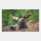 Magnífica foto de un majestuoso alce reclinándose en un campo de flores silvestres. Foto de Shivam Kumar.