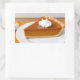 Un trozo de tarta de calabaza coronada con crema batida en un plato.