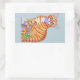 Pegatina Rectangular Naranja Tabby Cat con ratones bailarines frente