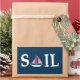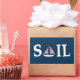 Ilustracion de diseño de textos náuticos con decoración de veleros de fondo azul oscuro. Es posible cambiar el color de fondo y añadir uno diferente al diseño con su elección.
