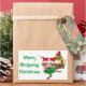 ¡Este es un lindo pegatina a usar durante la temporada de vacaciones! Presenta una colorida imagen de una mujer vestida de color rojo y verde que lleva un montón de regalos de Navidades envueltos en colores brillantes. El texto en verde claro dice Navidades de las compras de cerezas. ¡Qué lindo! *Gracias a Real Deal Clipart por el cliente usado para crear este diseño.